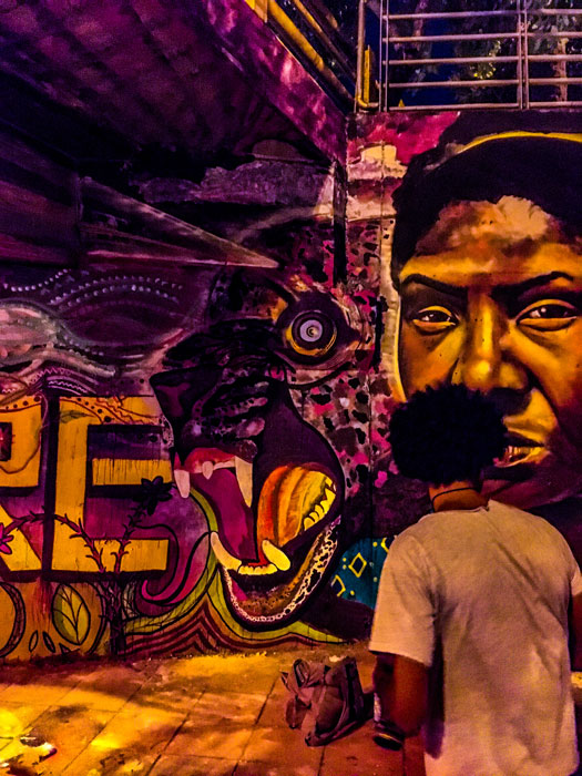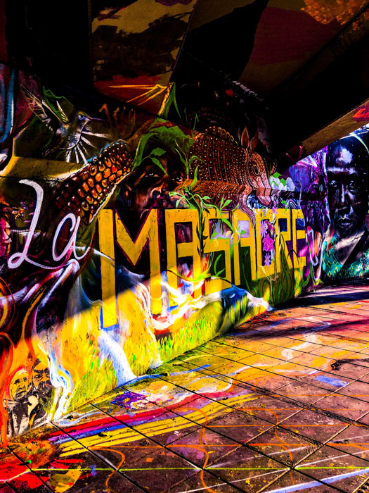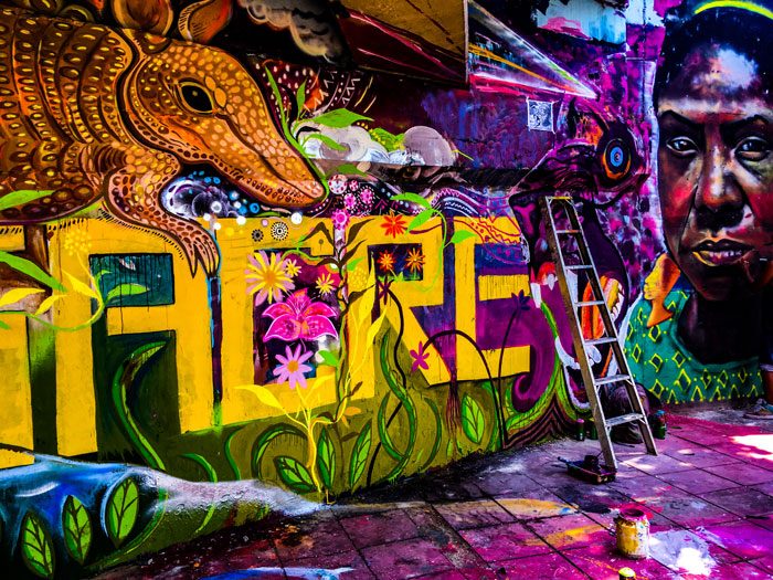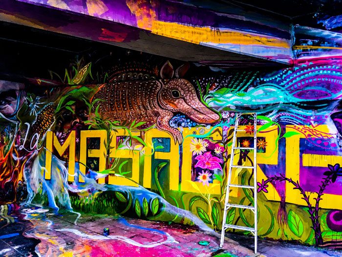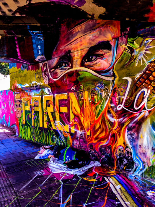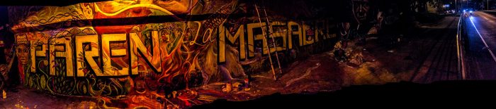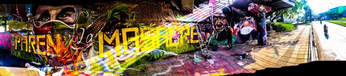 Mural ‘Paren la Masacre’ En proceso junto a Apu, Niño y V8. Debajo del puente Calle 5 con Av Roosvelt. Cali